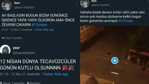 Her geçen gün daha da kontrolden çıkan sosyal medyada ‘12Nisan’, ‘tecavüz’ gibi etiketlerle yapılan, kadınların tecavüze uğramasını, katledilmesini teşvik eden ve okuyanların kanını donduran paylaşımlara tepki yağdı. Emniyet Genel Müdürlüğü’nden “Bu etiket adı altında suç işleyen hesaplar tespit edilerek gerekli soruşturmalar başlatılmıştır” açıklaması yapıldı. Son dakila gelişmesine göre Sosyal medyada '#12 Nisan' etiketiyle paylaşım yapan şüpheli serbest bırakıldı.