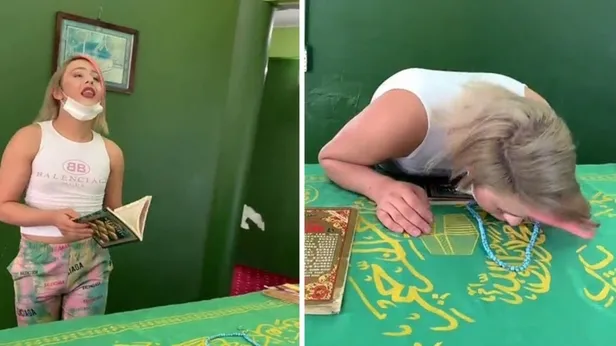 Görüntülerde açık kıyafetlerle türbeye giren şahsın elinde bir de dua kitabı olduğu görüldü. Daha sonra farklı mimikler yaparak arka planda duyulan Arapça ilahiye eşlik eden Şeker, türbeyi eğilerek öptü.