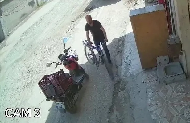 Elektrikli bisikletin üzerinde bulunan cep telefonunu 3 saniyede çalan hırsız kamerada