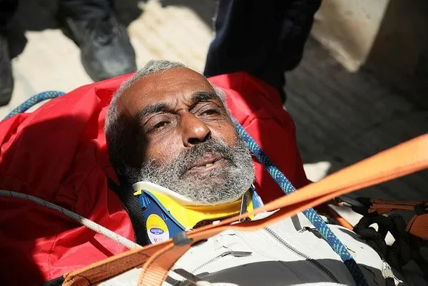 İtfaiye dere yatağına vinç yardımıyla sedye indirdi. Aparatlar yardımıyla kaşık sedyeye bağlayan Mehmet Tığ, vinçle yukarı çıkarıldı. 5 gün önce düştüğünü belirterek, "Susadığım anlarda bir kargının ucuna bağladığım pet şişeye dereden su doldurup içerek susuzluğumu giderdim" dedi. Kalabalığı gören Mehmet Tığ, kendisine yardım eden bir kişiden maske istedi. Maskesini takan Tığ, hastaneye götürüldü.