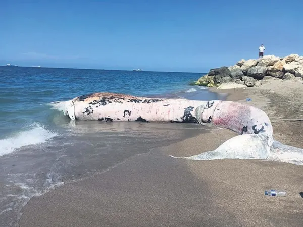 Mersin'deki Kushimoto Sokağı'nda korku! Dev balina balığı ölü olarak karaya vurdu