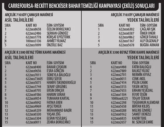 Carrefoursa-Reckitt Benckiser bahar temizliği kampanyası çekiliş sonuçları.