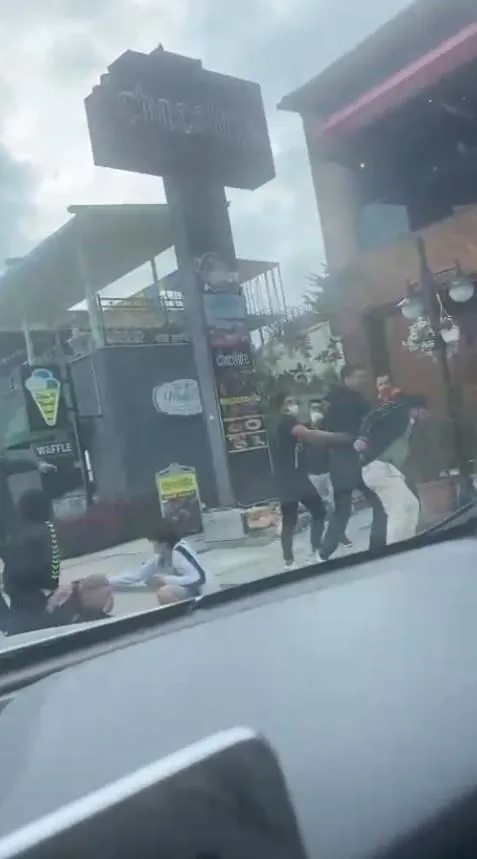 Restoran çıkışı karısını döven adama meydan dayağı! O anlar kamerada