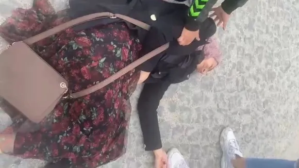 Restoran çıkışında adam bir anda eşini yumruklamaya başladı. Kadın aldığı darbelerin etkisiyle yere düşerek baygınlık geçirdi.