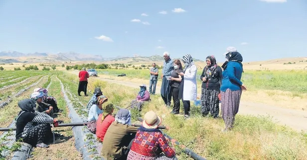 Tunceli'de sağlık ekipleri, Göktepe Köyü ve Akpazar beldesindeki tarlalarda çalışan mevsimlik işçilerin ayağına gitti. İkna edip aşılarını yaptı.