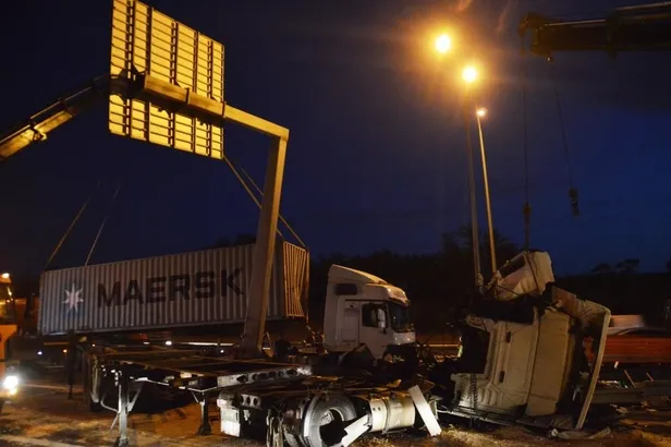 TEM'de feci kaza! TIR tabela direğine çarptı sürücü kabini paramparça oldu: 1 ölü