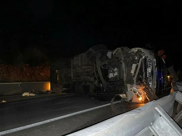 Günhan, trafikten dolayı yavaş ilerleyen araç konvoyunu görünce önce kornaya basmaya başladı, araçlara yaklaşınca ise direksiyonu kırarak kamyonunu yan yatırdı.