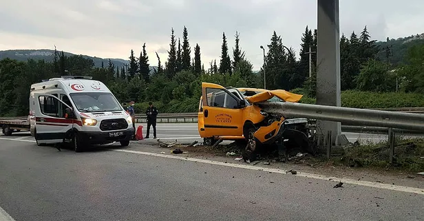 TEM'de kan donduran kaza! Taksi bariyerlere ok gibi saplandı: 2 ölü, 6 yaralı