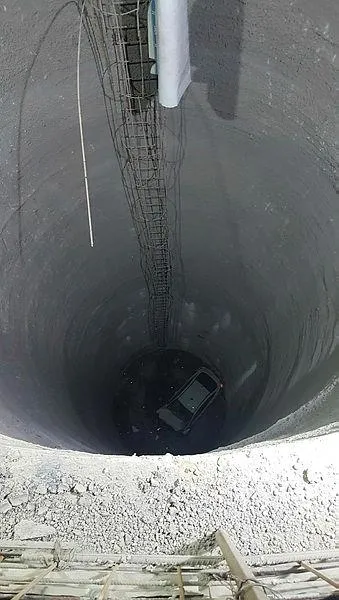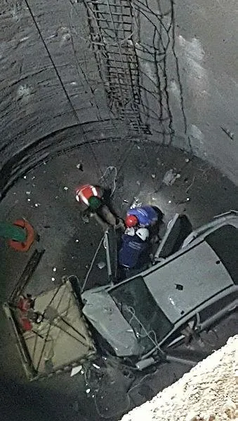 Bariyerleri aşan otomobil, metro inşaatında bulunan 25 metre derinliğindeki şaftın içine düştü.
