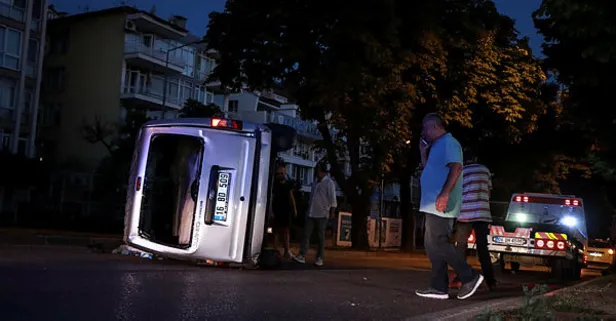 Bursa'da sabah saatlerinde kavşağa hızlı giren hafif ticari araç bir başka araca çarparak takla attı. Kazanın etkisiyle araçta bulunan poğaça ve börek hamurları yola saçıldı.