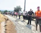 Mahalle sakinleri traktörlerine bağladıkları ilaç makinelerindeki suyu sıkarak, söndürme çalışmalarına destek veriyor.