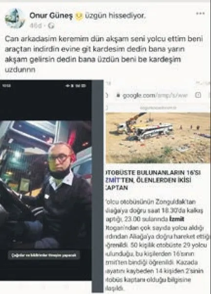 Ancak kaza öncesi yaşanan bir detay yürekleri parçaladı. Kazada otobüs sürücüleri Kerem Kader Başol ile Cengiz Umut da yaşamlarını yitirdi.
