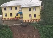 Çevresinde toprak kayması ve istinat duvarındaki hasar nedeniyle bina güvenlik şeridiyle çevrilerek tedbir alındı.