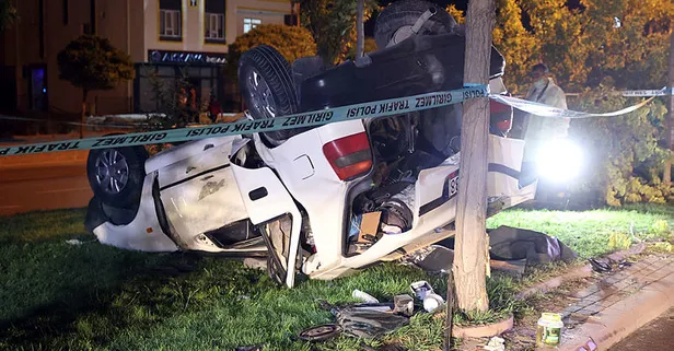 Konya'da refüjdeki ağaca çarpan otomobil takla attı: 1 ölü, 2 yaralı