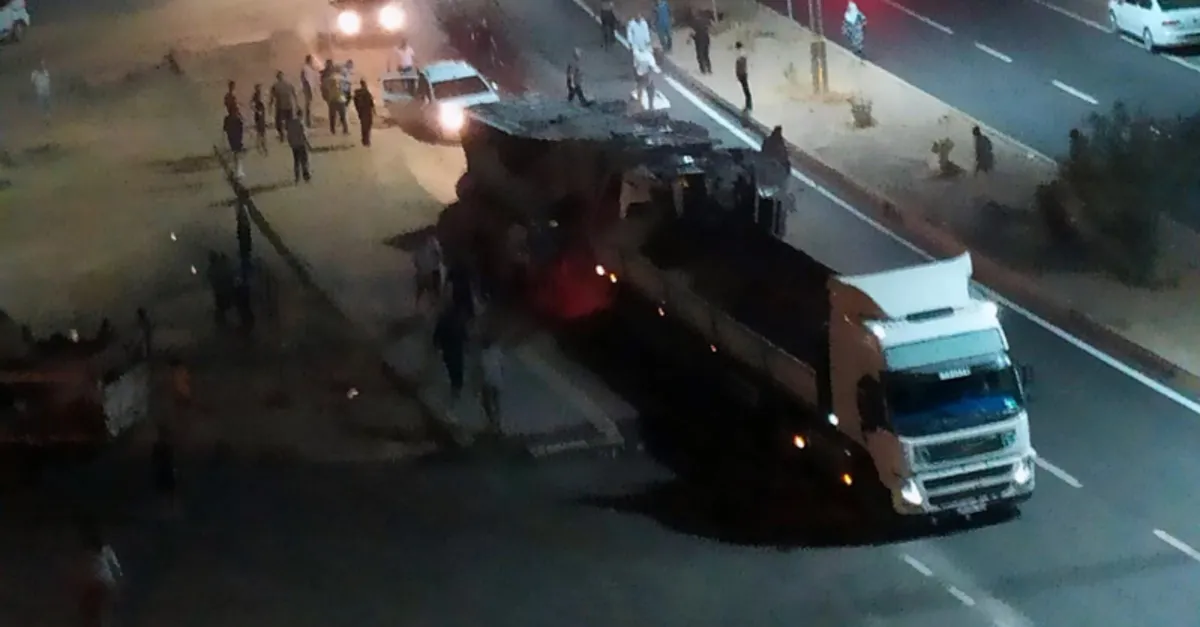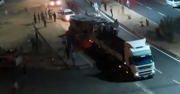 Mardin Derik'te akşam saatlerinde freni patlayan buğday yüklü tır, kontrolden çıkarak önündeki bir başka tıra çarptı. Feci kaza sonucu 1 kişi yaralandı.