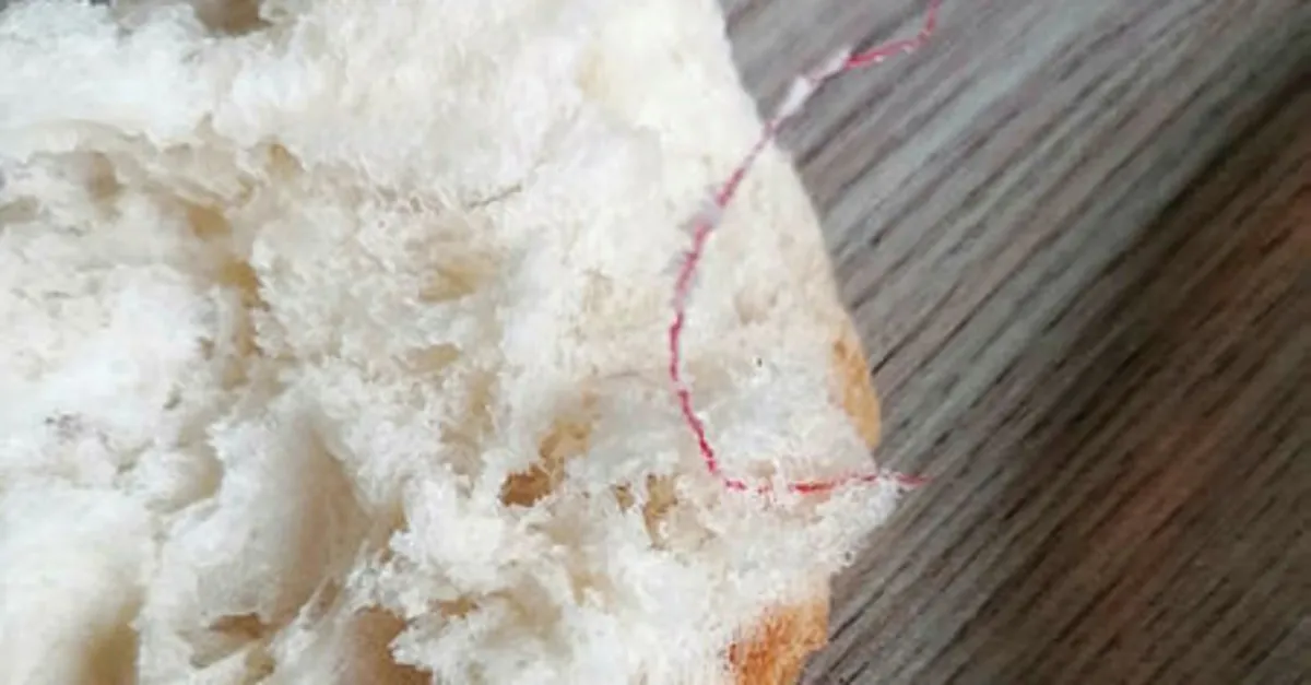 Bilecik'te marketten ekmek alan bir vatandaş, eve gittiğinde adeta şoka girdi. Ekmeği kestiğinde içinden kırmızı bir ip çıktığını gören kişi şkayette bulunsa da bir sonuç alamadığını söyledi.