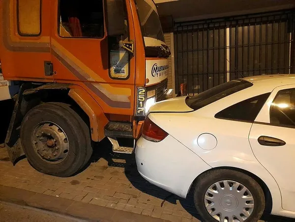 Sürücüsünün direksiyon hakimiyetini kaybettiği kamyon, park halindeki önce bir kamyonete ardından da 8 otomobile çarptı. Kaza sonrası kamyon sürücüsü yara almazken, park halindeki araçlarda hasar oluştu.