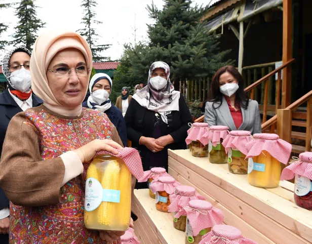 Emine Erdoğan, Çubuk ilçesinde kadınlarla bir araya geldi. Erdoğan, tarladan toplanan kelek, patlıcan ve lahanaları kavanozlara doldurarak turşu kurdu. Evde daha önce bu şekilde turşu kurmadığını söyleyen Erdoğan, "Bundan sonra evde turşuları ben yaparım artık, çok zevkli" dedi.