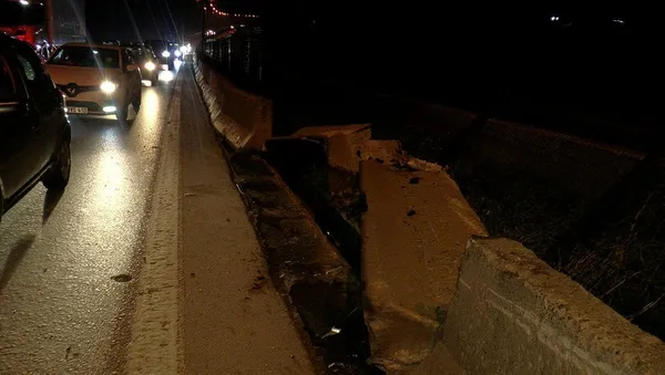 Son dakika haberi... İstanbul Kartal'da alkollü olduğu iddia edilen sürücü TEM bağlantı yolunda beton bariyerlere çarptı. Çarpmanın ardından takla da atan otomobil yaklaşık 200 metre sürüklenerek durabildi.