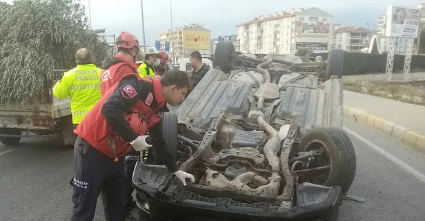 Balıkesir Edremit'te feci kaza! Otomobil takla attı burnu bile kanamadan çıktı!