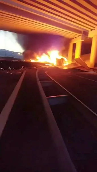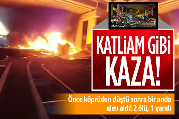 Köprüden düşen TIR alev alev yandı: 2 ölü, 1 yaralı