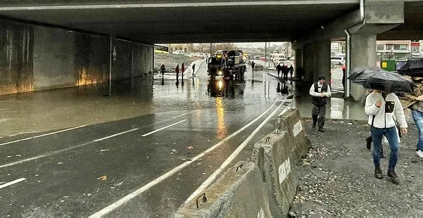 İstanbul'da etkili olan sağanak nedeniyle Unkapanı alt geçidinde rögarlar tıkandı.