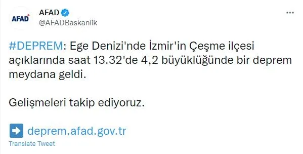 Son dakika: İzmir'in Çeşme ilçesinde 4,2 büyüklüğünde deprem | AFAD son depremler