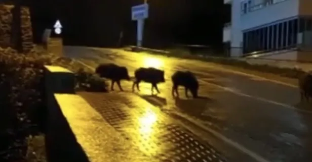Mudanya ilçesinde ise domuz sürüleri yiyecek ararken bir vatandaş tarafından cep telefonuyla kaydedildi.