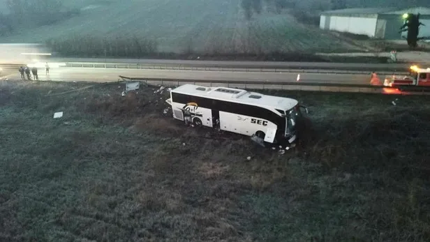 Şans eseri devrilmeyen otobüste 33 yolcudan 12'si yaralandı.