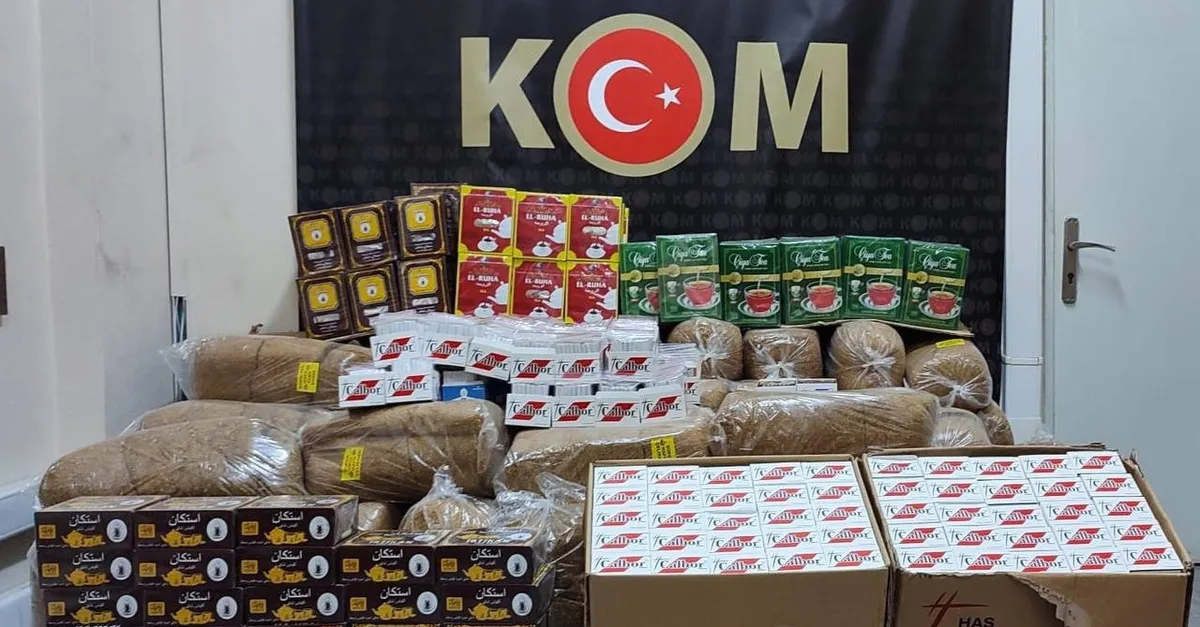 Yapılan aramada 45 bin 800 adet doldurulmuş makaron, 730 paket kaçak sigara, 26 bin 400 adet boş makaron, 7 kilo paketlenmiş tütün, 385 kilo kaçak kıyılmış tütün, 245 kilo gümrük kaçağı kaçak çay ele geçirildi. İş yeri sahipleri Şirin S, Onur Y, Ahmet Y. ve Resul İ. isimli şahıslar yakalanarak gözaltına alındı.