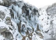 Ekici ve bazı köy sakinleri dondurucu soğukta önce donan nehrin üzerinde kayarak eğlendi.