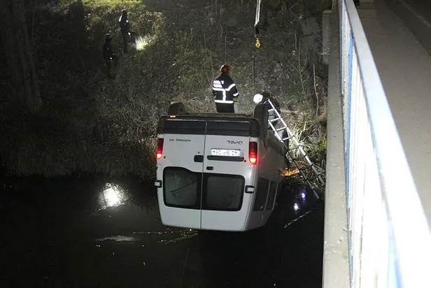 Son dakika haberi...Kocaeli'nin Başiskele ilçesinde sürücüsünün direksiyon hakimiyetini kaybettiği minibüs dereye uçtu.