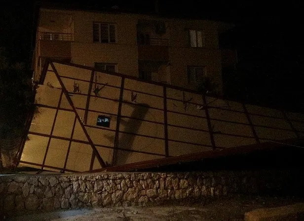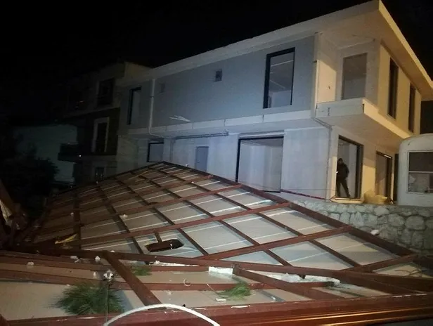 Olay, saat 23.00 ilçeye bağlı sıralarında Beyazevler 544 sokakta meydana geldi. Kuvvetli rüzgar, inşaat halindeki bir binanın çatısını uçurdu. Uçan çatı bitişikteki apartmanın bahçe duvarına devrilirken, elektrik tellerini de kopardı.