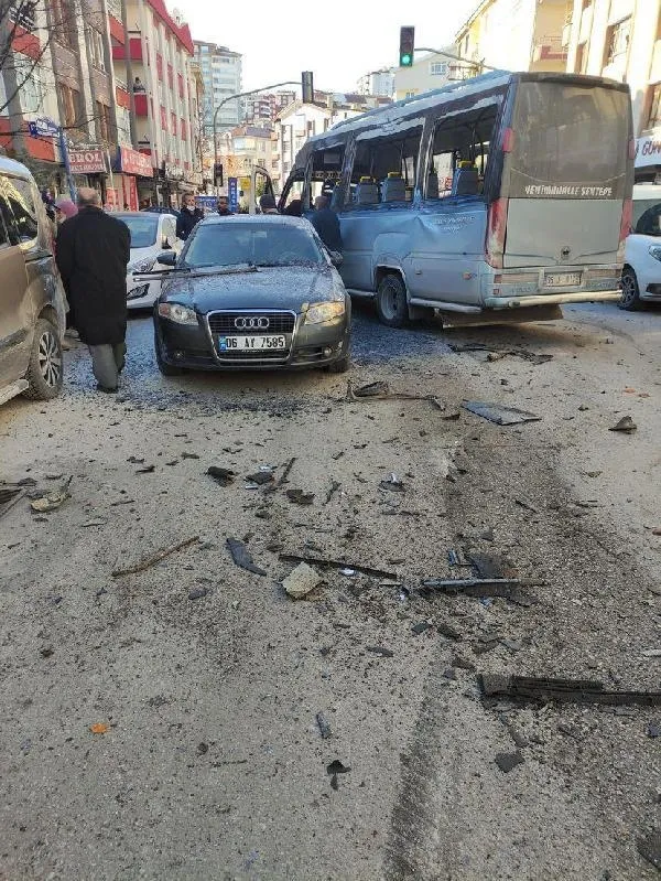 Ulus- Şentepe- Yenimahalle seferi yapan 06 J 0172 plakalı yolcu minibüsüne ara sokaktan çıkan bir otomobil yandan çarptı. Minibüs çarpmanın şiddetiyle karşı yönden giden 06 AY 7585 plakalı otomobilin üzerine yan devrilip geri düzeldi.
