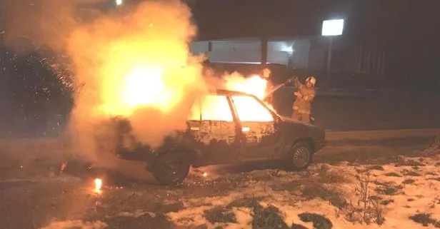Aracın yandığını gören vatandaşlar durumu itfaiyeye bildirdi.