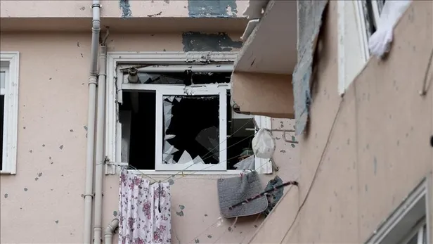 Patlamayla birlikte binadan çevreye eşya ve molozların saçıldığı görülüyor.