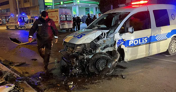 Polis aracı refüjdeki ağaca çarptı! 2 polis yaralı