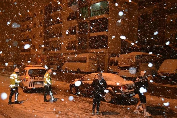 Gece yarısı halı saha maçından dönen gençlerin, arabayla karda drift eğlencesi polis engeline takıldı. Seyir halinde yol kontrolüne çıkan trafik polisi ekibi, Bülent Ecevit Bulvarı ile Şinasi Kurşun Caddesi'nin buluştuğu kavşakta karla kaplı zeminde bir otomobili drift atarken yakaladı.