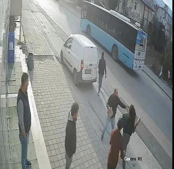 Eşini içeride gören T.A. konuşmak istemeyip eşini iş yerinden çıkarmaya çalıştı. Bunun üzerine çift arasında kısa süreli arbede yaşandı. Dışarı taşan kavga çevredeki esnafın araya girmesiyle yatıştırıldı. Durumun 112 Acil Çağrı Merkezi'ne bildirilmesiyle çift polis merkezine götürüldü. Öte yandan, dışarı ve iş yeri içindeki çiftin, tokatlı, kaldırım taşlı kavgası çevredeki iş yerlerinin güvenlik kamerasına yansıdı.