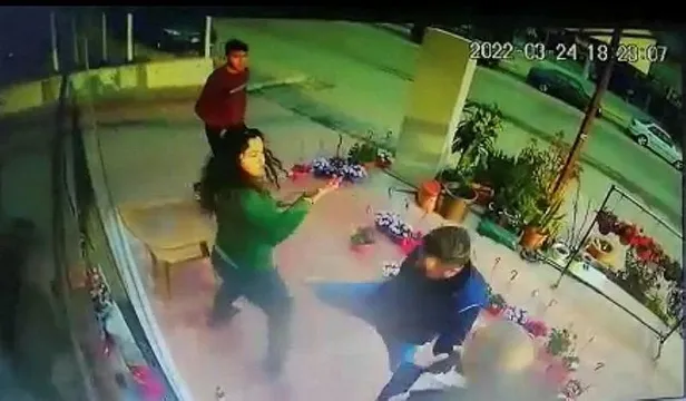 Antalya’nın Döşemealtı ilçesinde karı koca arasındaki kavga güvenlik kamerasına yansıdı. Kadının kocasını tokatladığı, sandalye fırlattığı ve kaldırım taşı attığı anlarda çevredekilerin müdahele ettiği görüldü.