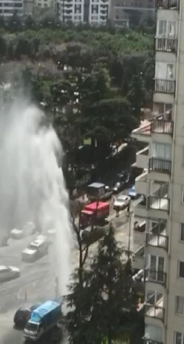 Bu arada, patlayan borudan suyun fışkırdığı anlar, bir vatandaşın cep telefonu kamerasına yansıdı. Görüntülerde, tazyikli suyun yaklaşık 15 metre yüksekliğe kadar çıkması ve caddeye yayılması yer alıyor.