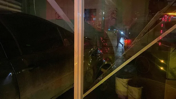 Bursa'da çarpışan iki araçtan biri iş yerine daldı!