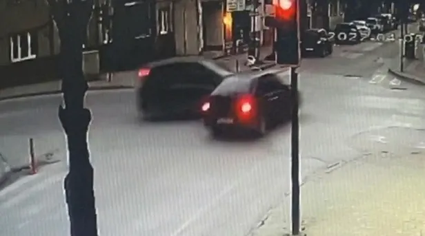 Bursa'nın İnegöl ilçesinde iftara yakın saatte meydana gelen kazada kavşakta çarpışan iki otomobilden biri savrularak yol kenarındaki özel bir diş kliniğine daldı. Şans eseri yaralananın olmadığı kaza, çevredeki bir iş yerinin güvenlik kamerasına yansıdı.
