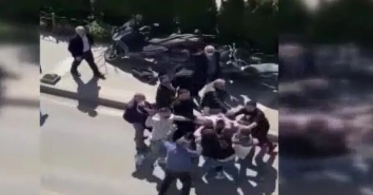 Tartışmanın büyümesi üzerine iki grup cadde ortasında kavgaya tutuştu. Çevredeki vatandaşların çığlık atarak uzaklaştığı kavgada tekme ve yumruklar havada uçuştu. Kavga esnasında taraflardan biri ise karşı tarafa kask fırlattı. Yaşanan o anlar vatandaşın cep telefonu kamerasına yansıdı.