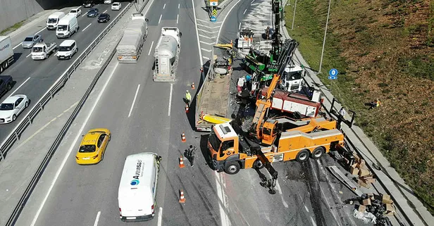TEM'de trafiği kilitleyen kaza! Tonlarca ağırlığındaki makine yola düştü