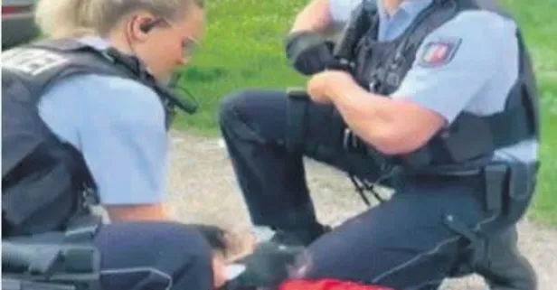 Alman polisi yere yatırdığı Emirhan'ın boğazına bastırarak ters kelepçe taktı...