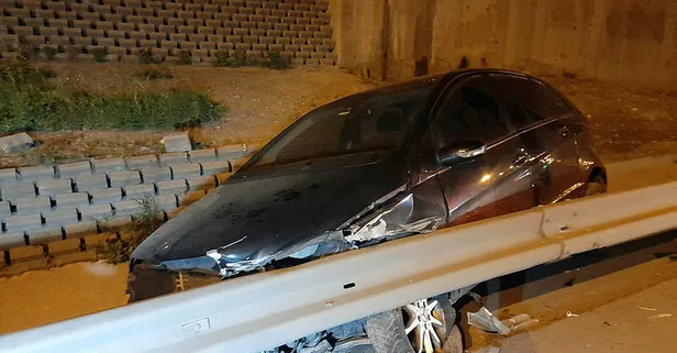 TEM Otoyolu'nda bariyerlere çarpan otomobil, su tahliye kanalına girdi