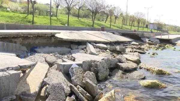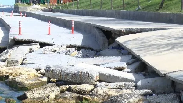 Beylikdüzü Gürpınar Sahili yürüyüş yolunda çökme meydana geldi