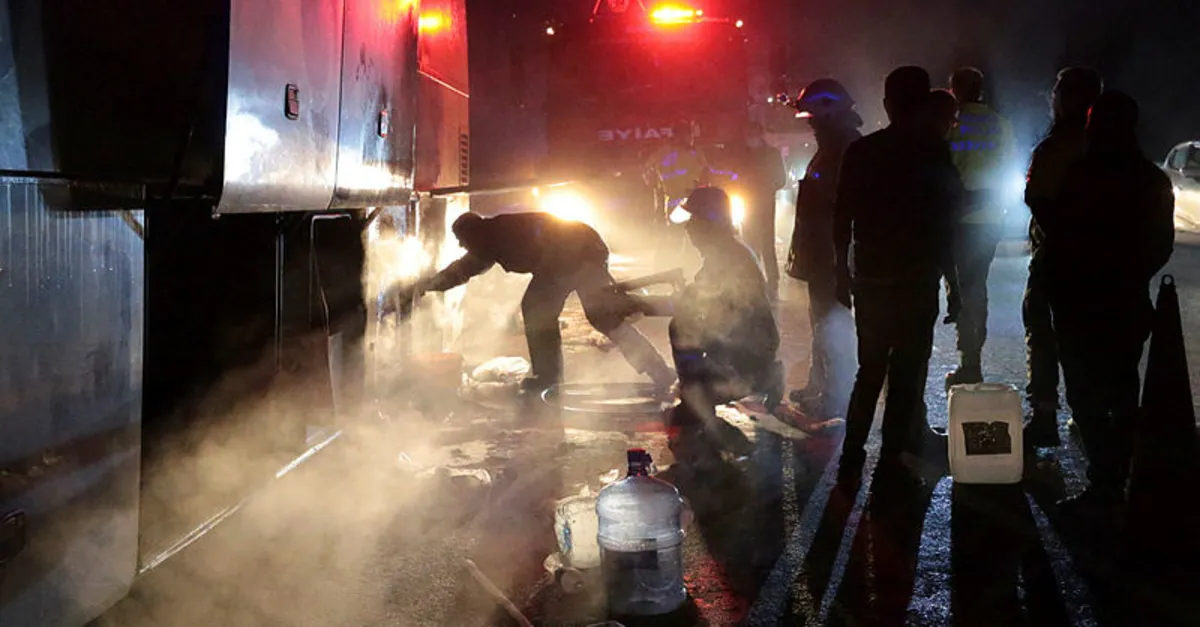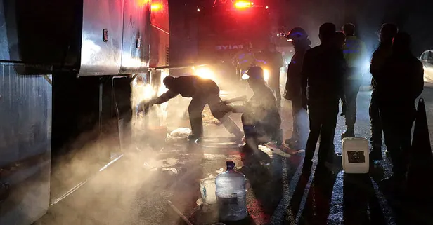Bu sırada lastik alev aldı. Alevler, otobüse sıçradı. Sürücü, otobüsü emniyet şeridine çekip, yolcuların araçtan inmesini sağladı. Yangını görerek duran diğer sürücülerin de yardımıyla yangın söndürüldü. Daha sonra olay yerine gelen itfaiye ekipleri, soğutma çalışması yaptı. Yangın nedeniyle araç hasar gördü. Söndürme çalışmaları sırasında 3 şeritli yolun sağ şeridi ulaşıma kapandı. Bayram trafiği yoğunluğunun da yaşandığı yolda uzun araç kuyrukları oluştu. Yolcu otobüsünde bulunan 41 yolcu, başka bir yolcu otobüsüyle gidecekleri yere gitmek üzere yola çıktı.