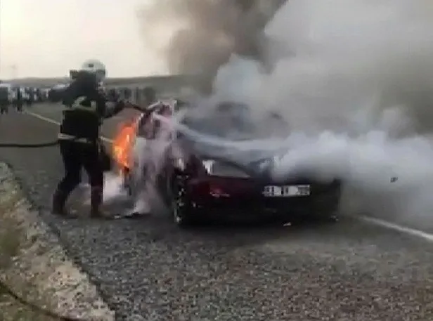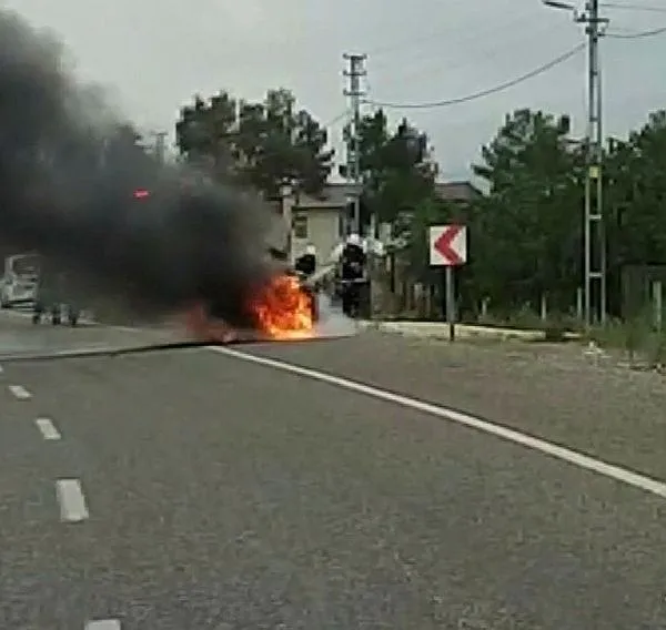 Otomobilin elektrik aksamından çıktığı tahmin edilen yangını fark eden araç sürücüsü, araçtan inerek alevlere müdahale etmek istedi. Yoldan geçen diğer araç sürücülerinin de yardıma koştuğu o anlar amatör kameralar tarafından kayda alındı.